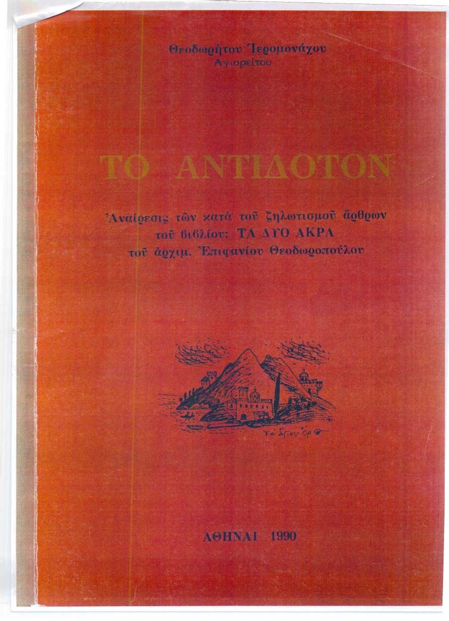 ΤΟ ΑΝΤΙΔΟΤΟΝ ''ΑΝΑΙΡΕΣΙΣ ΤΩΝ ΚΑΤΑ ΤΟΥ ΖΗΛΩΤΙΣΜΟΥ ΑΡΘΡΩΝ ΤΟΥ ΒΙΒΛΙΟΥ: ΤΑ ΔΥΟ ΑΚΡΑ ΤΟΥ ΑΡΧΙΜ. ΕΠΙΦΑΝΙΟΥ ΘΕΟΔΩΡΟΠΟΥΛΟΥ''